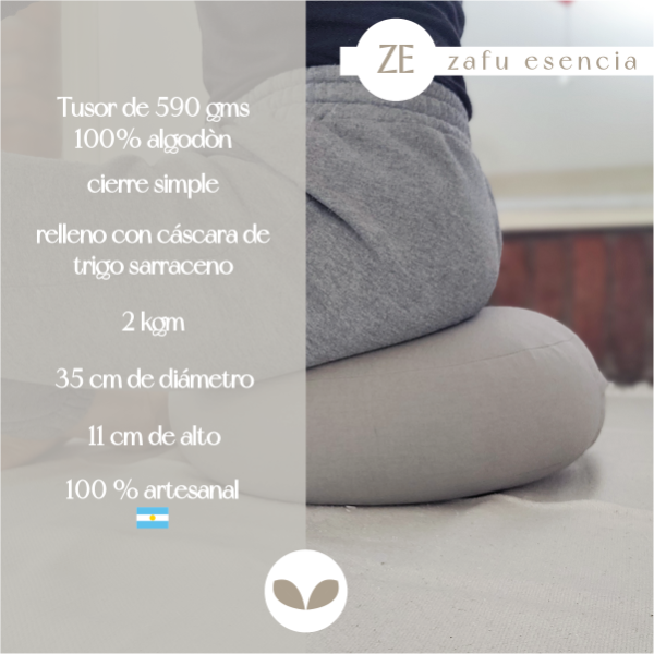 Diámetro 35 cm, 11 cm de alto. Su peso es de 2 KG aproximadamente. Esto lo convierte en un almohadón generoso para cualquier persona que por sus condiciones fìsicas pueda bajar al piso y sentarse en él